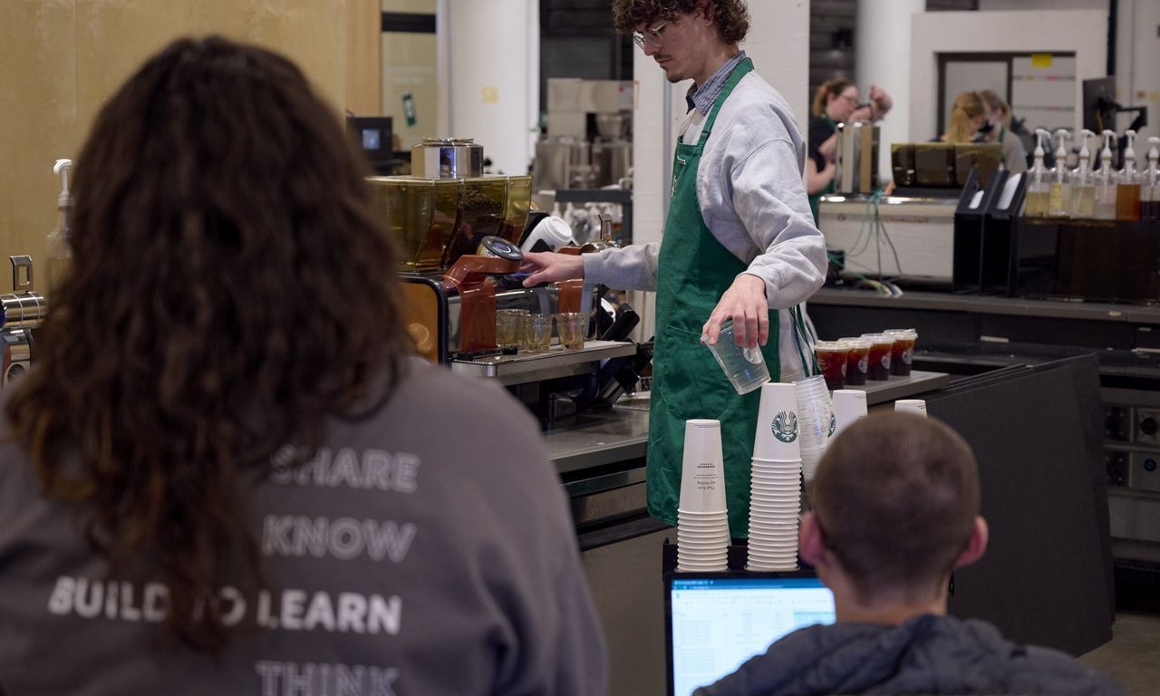 So Starbucks also has been testing how to overhaul operations to improve the experience for both employees and customers. If employees spend less time running around fetching foam and carrying 20-pound buckets of ice, maybe they will be happier working there.